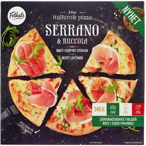 Serranoskinken følger med i egen pakning slik at den kan legges på før eller etter steking. Pizzaen er produsert i Modena i Nord-Italia, en provins kjent for sin rike matkultur. Deigen er hevet naturlig i 24 timer, strukket for hånd og stekt på tradisjonell italiensk måte, i vedfyrt stenovn. Bruk av ved fra bøk og eik ved fyring gir en unik aroma. Toppingen påføres, og pizzaen fryses ned umiddelbart for å beholde den gode kvaliteten.